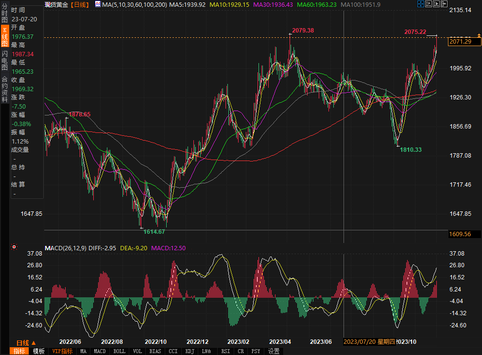 现货黄金收报2071.93美元/盎司,收涨1.76%。