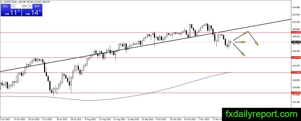 美元/日元昨天收涨,有机会继续上行至150.00。然而,走势已经逆转,该货币对今天经历了疲软。该货币对的下行目标位于147.00和145.00。