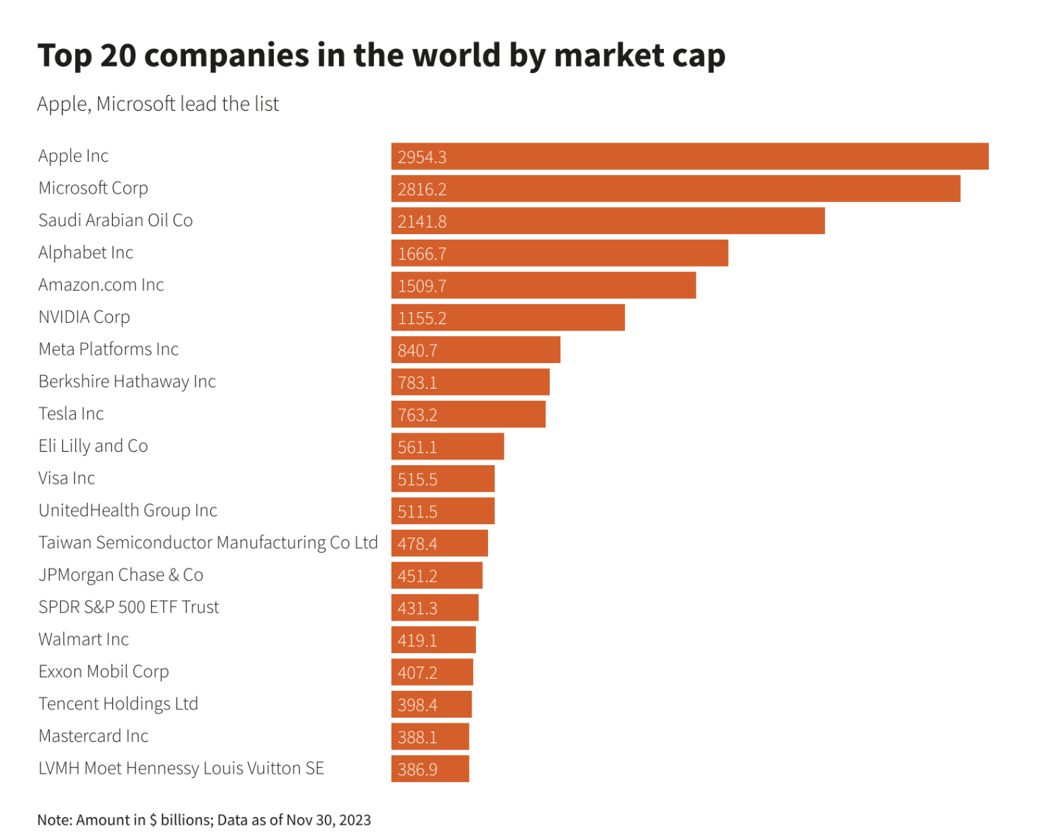 受美国国债收益率下降以及人们对全球央行可能降息的预期日益增强,以知名科技公司为首的全球大型企业的市值在 11 月份大幅上升。