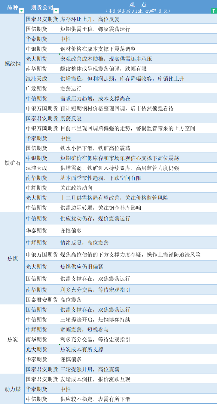 汇通财经APP讯——期货公司观点汇总一张图:12月4日黑色系(螺纹钢、焦煤、焦炭、铁矿石、动力煤等)