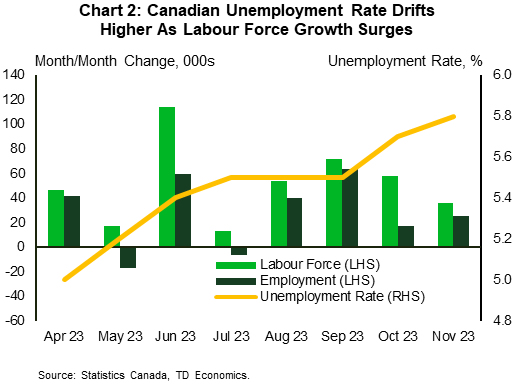鉴于信贷供应的减少和疫情时代“过度储蓄”的减少,美国消费者将不得不更加依赖收入增长来为支出提供资金。因此,劳动力市场的任何疲软都会影响到消费的疲软。看看劳动力市场,11月中旬持续申请失业救济人数上升至193万。这是自2021年末以来的最高水平,也是劳动力市场逐渐降温的又一个迹象。总体而言,我们预计假日期间消费者支出将保持活跃,但这一势头可能会减弱,本季度消费增长可能会放缓至2%左右。