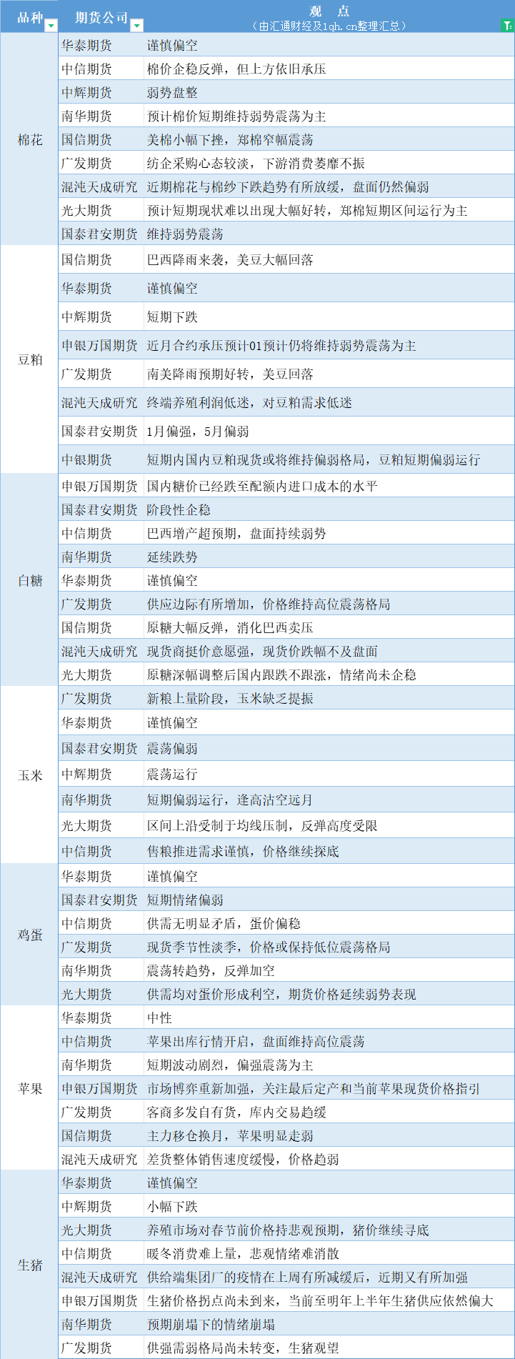 汇通财经APP讯——期货公司观点汇总一张图:12月5日农产品(棉花、豆粕、白糖、玉米、鸡蛋、生猪等)