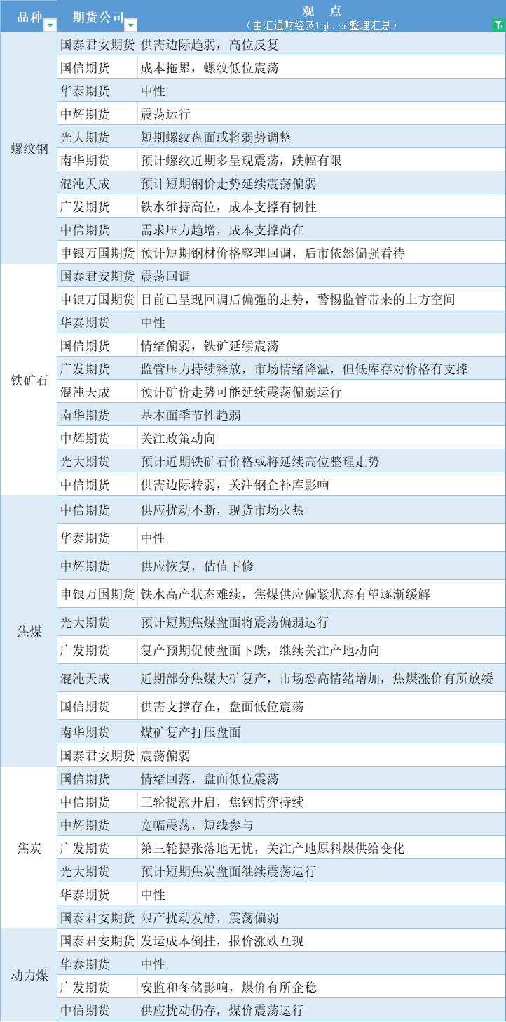 汇通财经APP讯——期货公司观点汇总一张图:12月5日黑色系(螺纹钢、焦煤、焦炭、铁矿石、动力煤等)