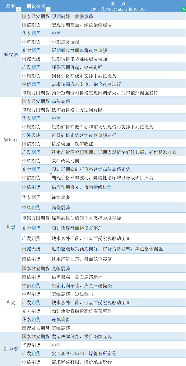 汇通财经APP讯——期货公司观点汇总一张图:12月8日黑色系(螺纹钢、焦煤、焦炭、铁矿石、动力煤等)