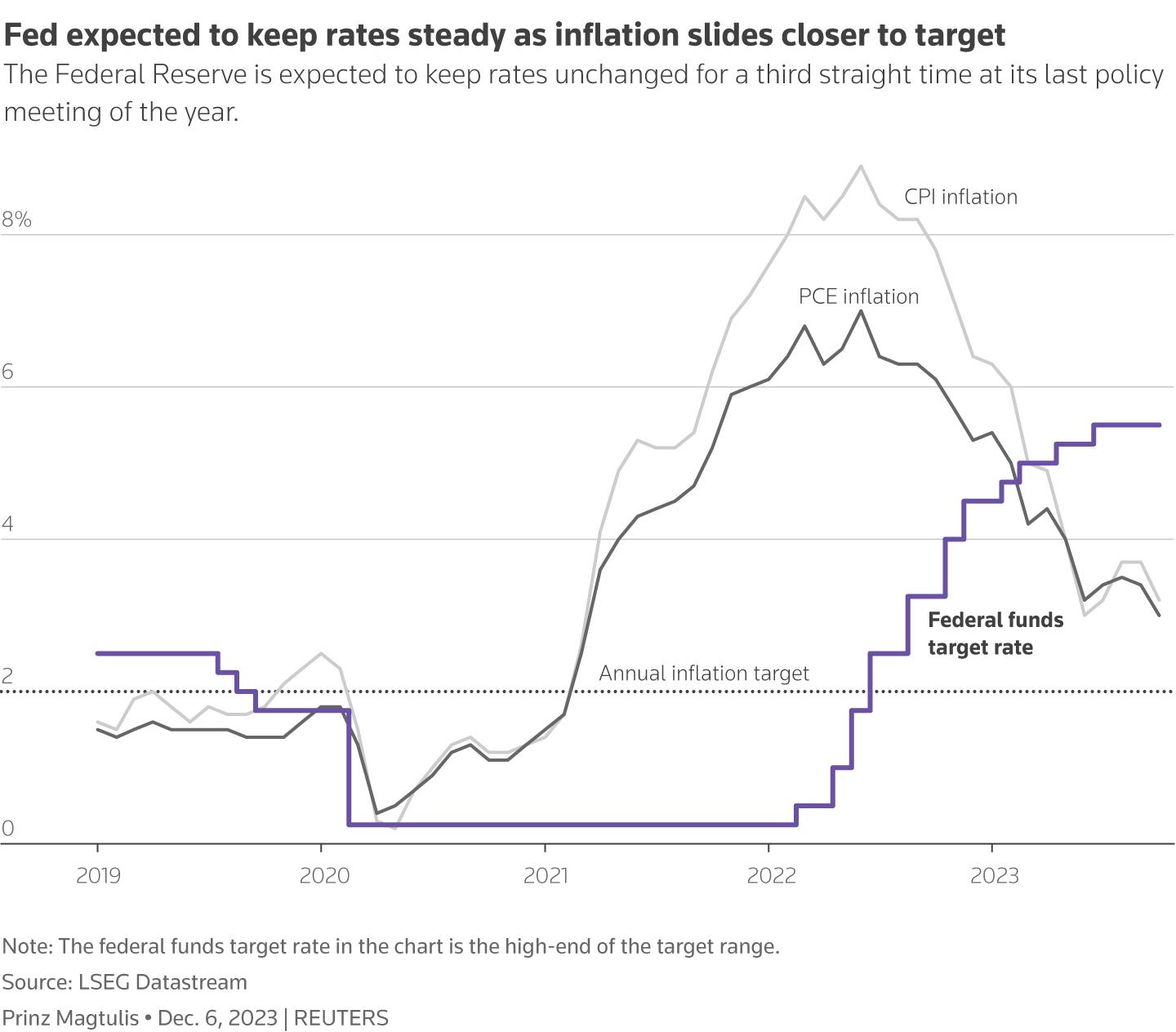 数据公布后,美联储12月维持利率不变的概率略有上升。据CME“美联储观察”:美联储12月维持利率在5.25%-5.50%区间不变的概率为98.2%(数据公布前为97.7%),加息25个基点的概率为1.8%(数据公布前为2.3%)。到明年2月维持利率不变的概率为92.2%(数据公布前为85.9%),累计降息25个基点的概率为6.1%,累计加息25个基点的概率为1.7%。