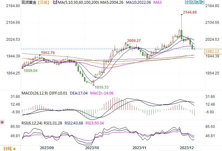 北京时间12月12日10:58 现货黄金 报 1982.13 美元/盎司