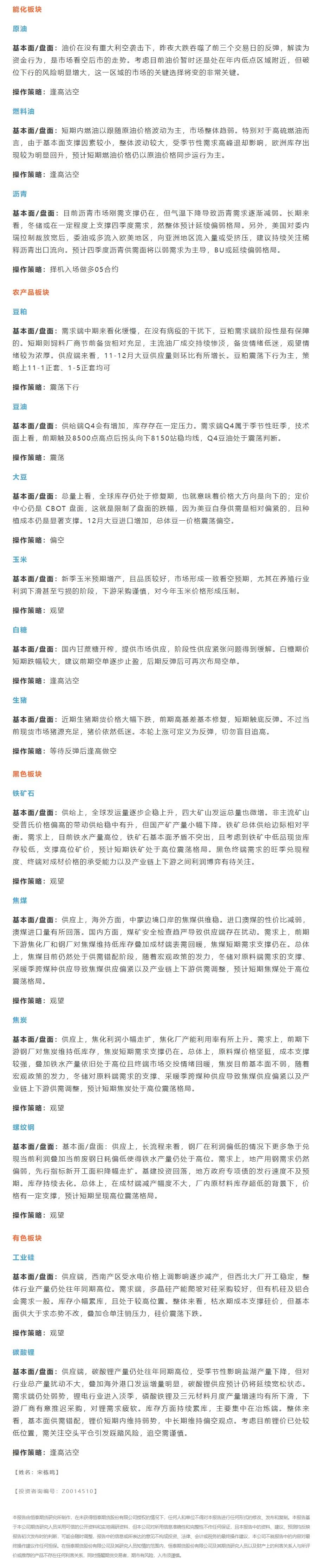 汇通财经APP讯——以下为恒泰期货12月13日对能源板块、黑色板块、农产品板块期货交易提醒和建议。恒泰期货公司授权文本由“专注期货开户交易及专业行情分析资讯网站”:【一期货 www.1qh.cn】转发