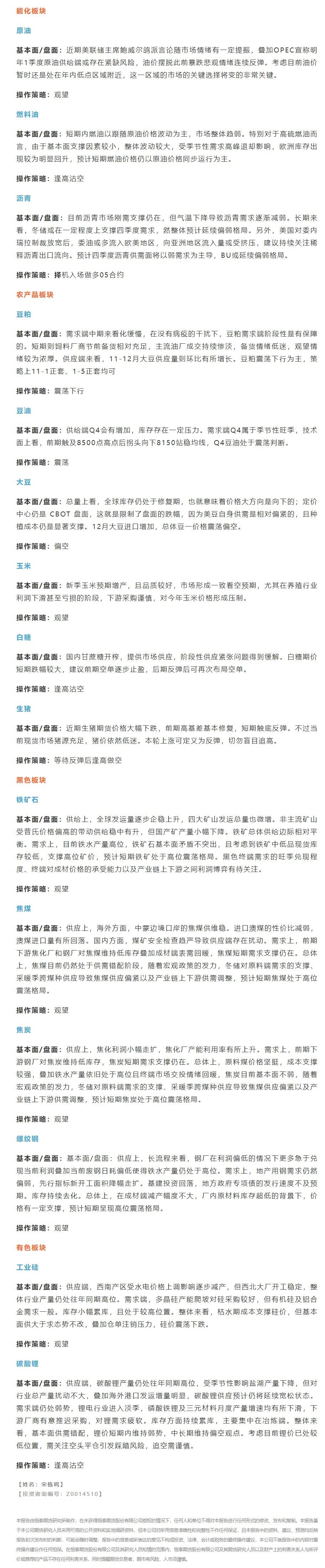 汇通财经APP讯——以下为恒泰期货12月15日对能源板块、黑色板块、农产品板块期货交易提醒和建议。恒泰期货公司授权文本由“专注期货开户交易及专业行情分析资讯网站”:【一期货 www.1qh.cn】转发