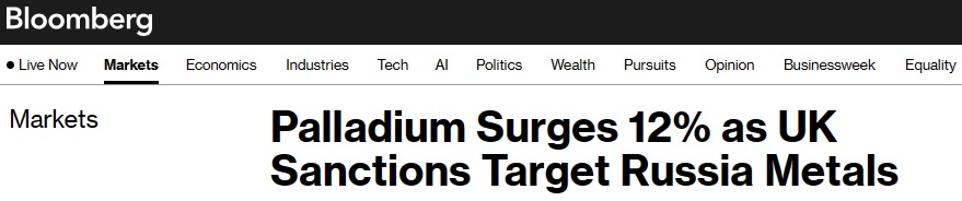 据美国彭博社报道,因为英国政府针对俄罗斯金属(但不包括钯金)实施了新的制裁,周四钯金创下自2020年3月以来的最大单日涨幅。
