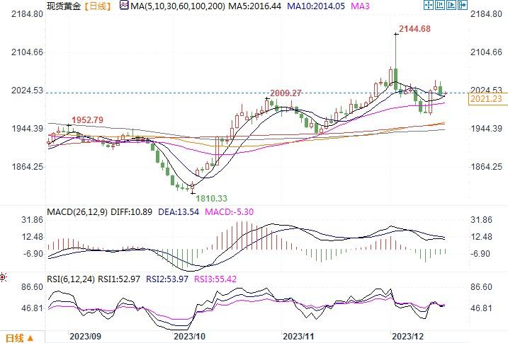 北京时间12月18日10:55 现货黄金 报 2021.23 美元/盎司