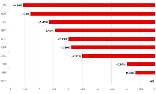 (美元是过去几个月G10中表现最差的货币 图源:poundsterlinglive)