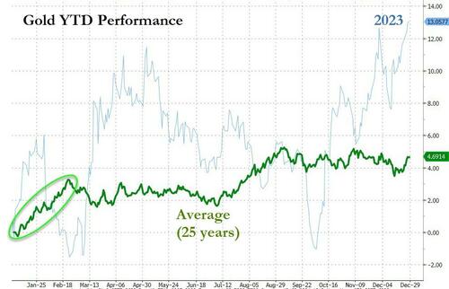 (黄金年初至今表现,来源:ZeroHedge)