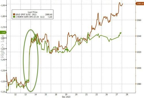 尽管美联储官员试图收回降息预期,但自从美联储实际上屈服于通胀以来,金价已经上涨。 12 月 12 日,金价触及1,980 美元/盎司的低点。此后,金价一路攀升至 2,080 美元/盎司。