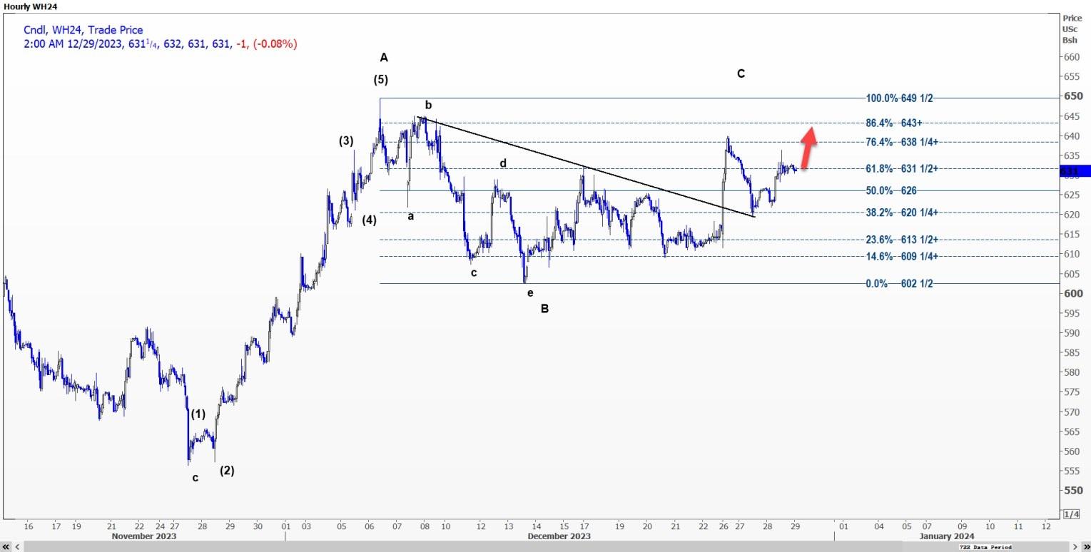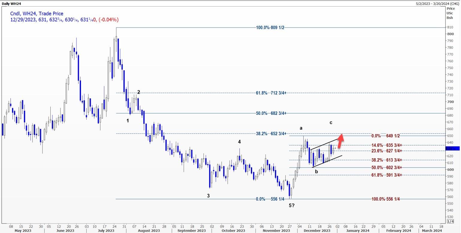 CBOT 3月小麦WH24可能会测试每蒲式耳6.3825美元的阻力位,突破该阻力位可能会打开通往6.43美元至6.4950美元区间的道路。