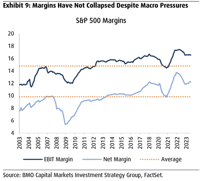 令一些人吃惊的是,高利润率一直在持续。在一年前小幅下滑之后,利润率在第二季度和进入2023年第三季度之际恢复增长。