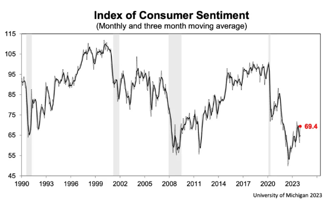 密歇根大学表示:“12月份消费者信心飙升13%,抹去了此前四个月的所有跌幅,这主要是基于通胀预期轨迹的改善。”