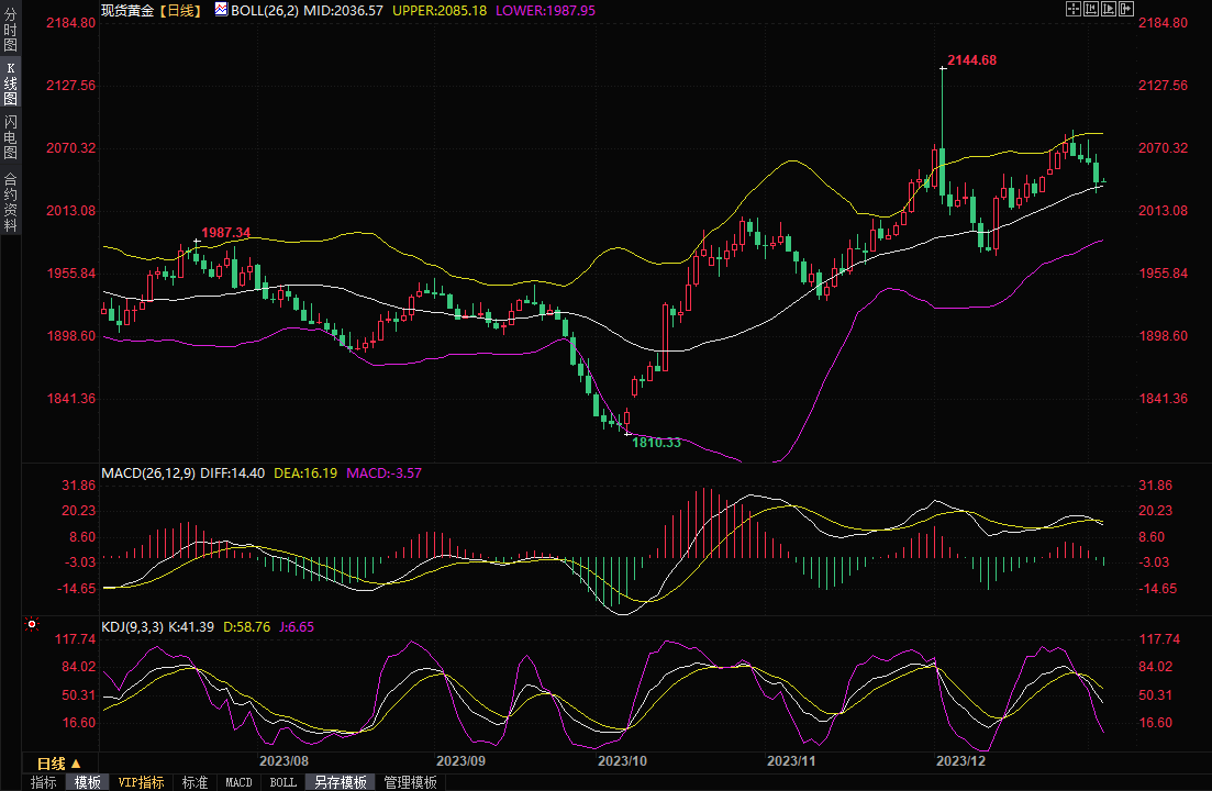 现货黄金周三结算价收跌0.85%,收报2041.39美元/盎司。周四(1月4日)亚市,目前交投于2040.30美元/盎司附近。