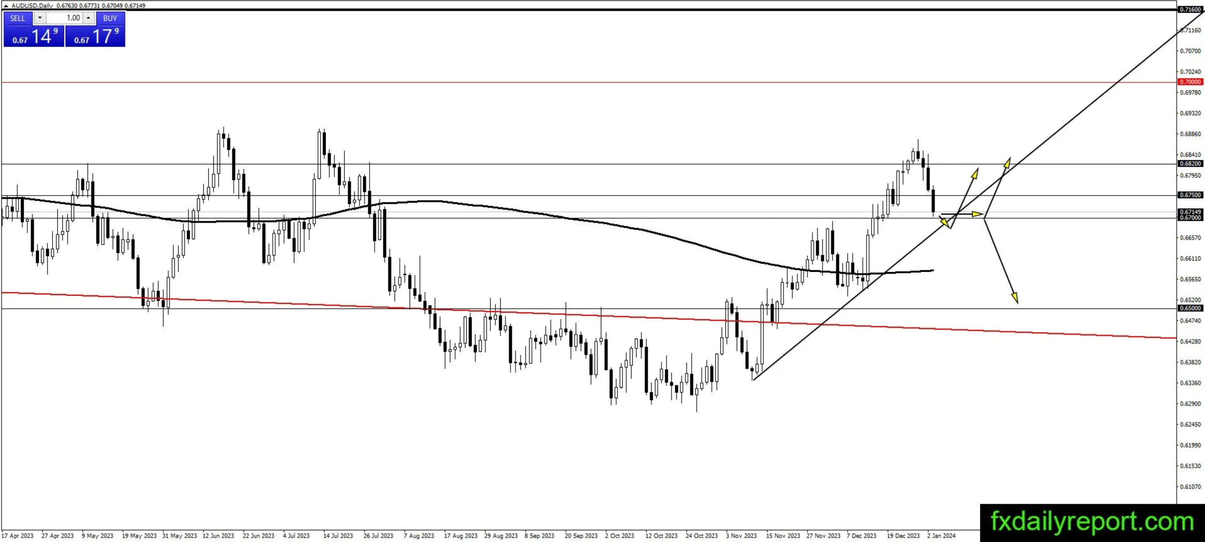澳元/美元进入0.6700至0.6750区域,可能会出现看涨反应。交易者将等待该区域以及趋势线附近的反弹。当形成看涨蜡烛图时,这是交易者进入多头头寸的时机。然而,看跌修正仍有可能继续向200日移动平均线移动,交易者应保持谨慎,并在考虑到这种可能性的情况下规划多头头寸。