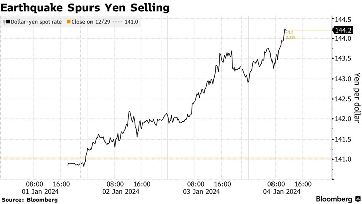 周五(1月5日)亚市盘中,美元/日元交投在144.70附近,较2023年底的141.04飙升逾360点。