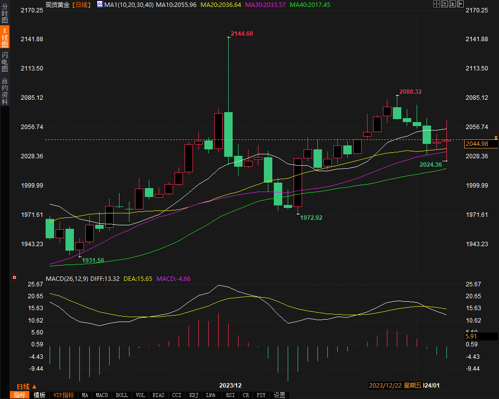 美国就业报告的发布对黄金市场产生了影响。由于劳动力市场的表现好于预期,削弱了市场对美联储今年迅速降息的预期,导致黄金价格下跌。12月非农就业人数增加21.6万人,高于市场预期,同时薪资增幅也超过预期。这些数据发布后,黄金价格下跌了0.9%。这些数据表明美联储可能不会迅速转向宽松货币政策,这将有利于非收益资产如黄金等。然而,随着市场对经济状况的进一步评估,黄金价格已经回吐了大部分涨幅。