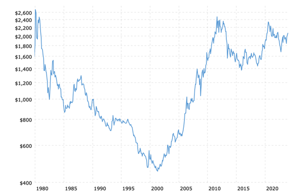 1980 -2023年黄金价格(经通胀调整)
