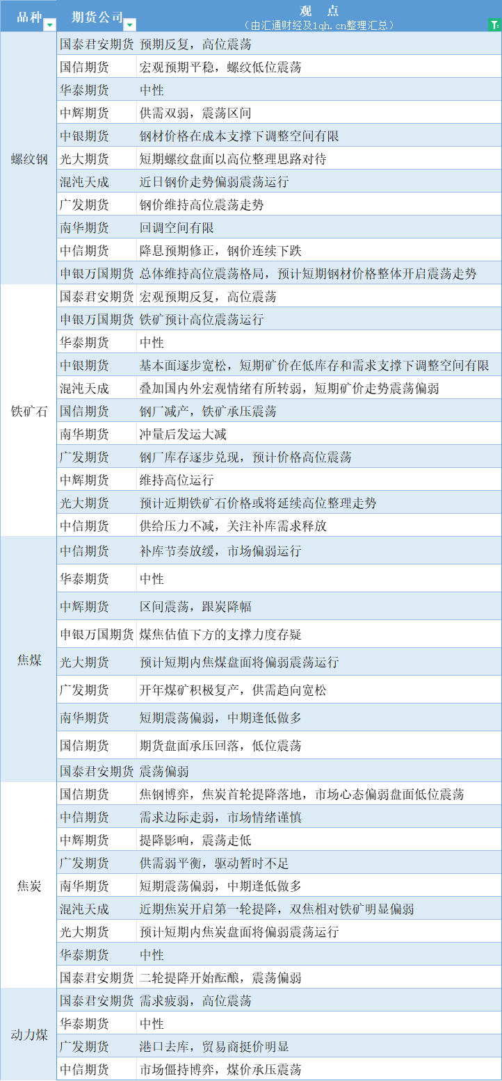 汇通财经APP讯——期货公司观点汇总一张图:1月9日黑色系(螺纹钢、焦煤、焦炭、铁矿石、动力煤等)