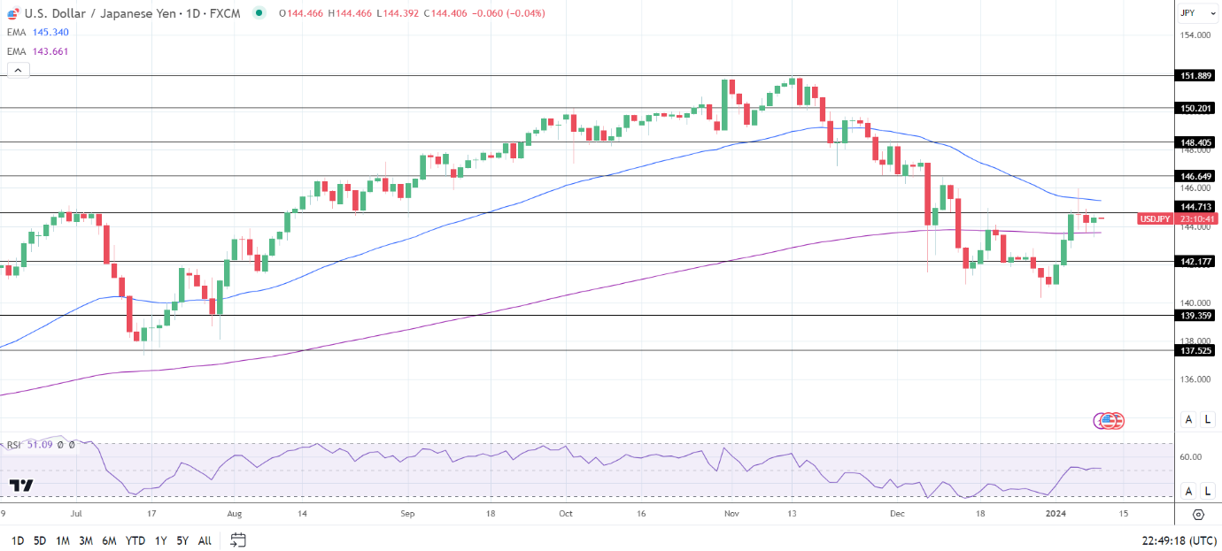 14天RSI为51.09,表明美元/日元在进入超买区域之前将回到146关口。