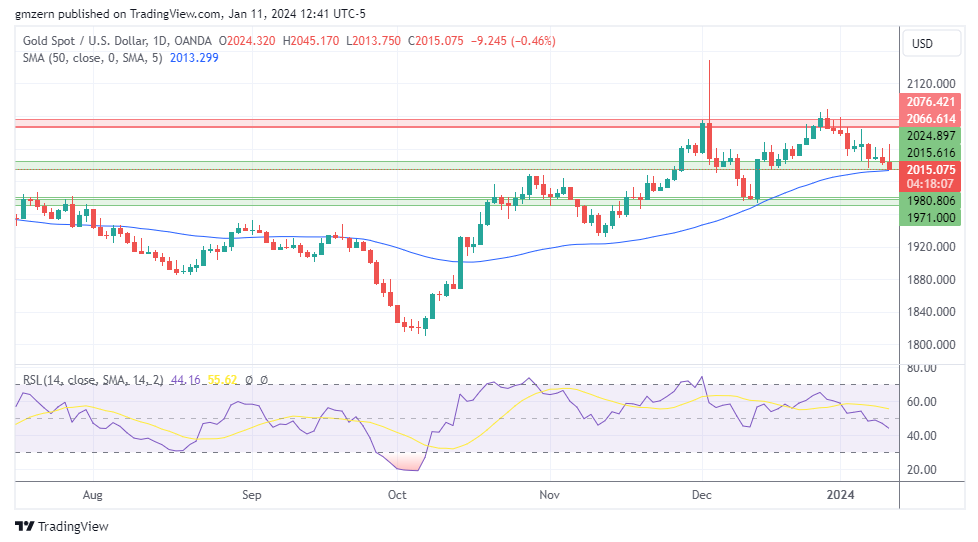 由于交易者对美国通胀报告做出反应,黄金正在下跌,跌破2015美元至2025美元的支撑位将为测试下一个支撑位1970美元至1980美元打开道路。