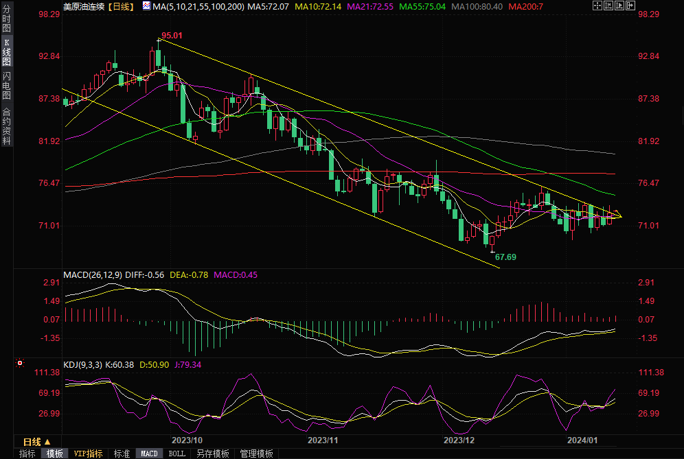 WTI原油期货结算价收涨上涨0.65美元/桶,或0.91%,收报72.02美元/桶。