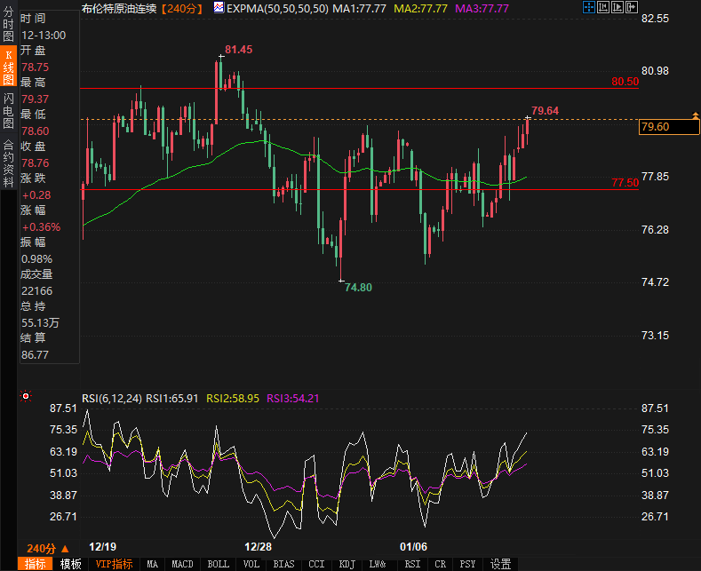 汇通财经APP讯——周五(1月12日),欧盘时段,红海紧张局势引发不安,美原油连续震荡走高,盘中报73.93美元每桶,涨幅1.50%。布伦特原油连续盘中报79.31,涨幅1.90%。