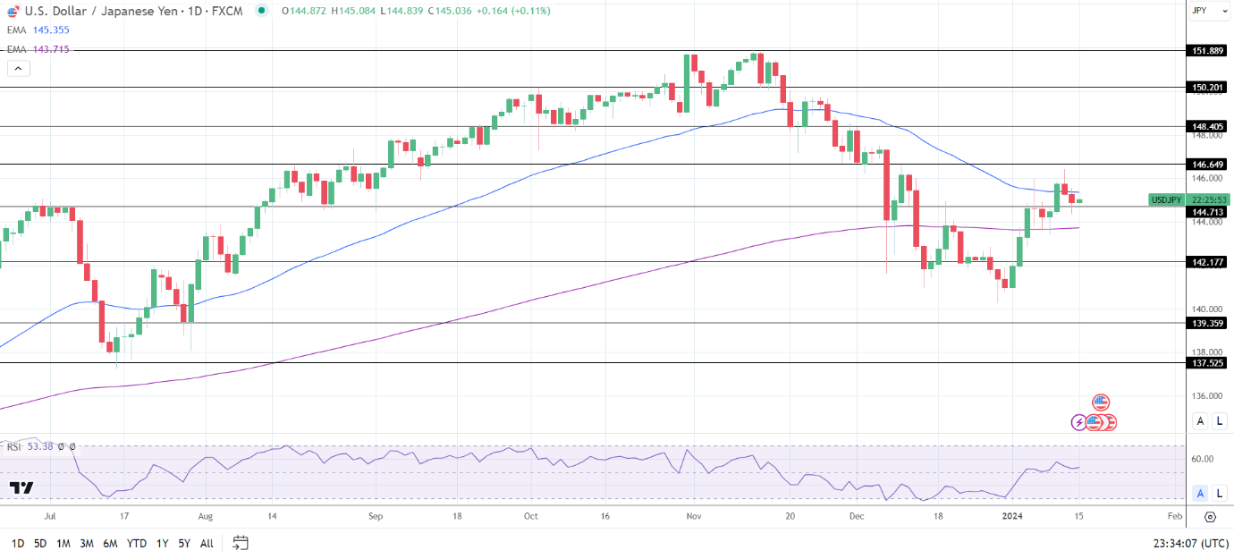 标题:美联储3月降息押注逼近80%,美元/日元鏖战145,若破144.71则下看200日均线