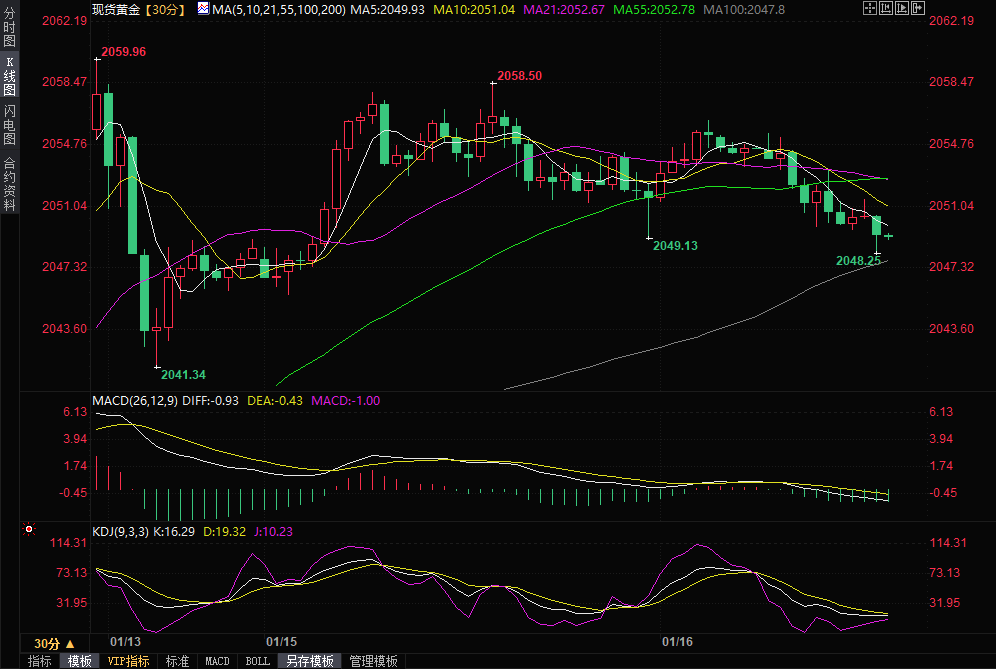 周二(1月16日)亚市盘中,美元短线震荡走高,一度刷新逾一周高点至101.92,涨幅约0.3%。随着美元走强,现货黄金短线遭到抛售,金价刚刚跌破2050美元/盎司关口,最低触及2048.25美元/盎司。