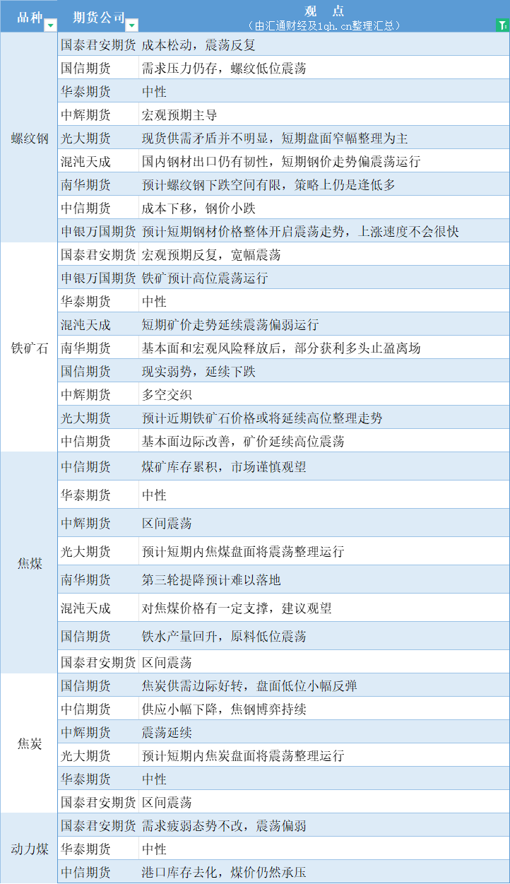 汇通财经APP讯——期货公司观点汇总一张图:1月16日黑色系(螺纹钢、焦煤、焦炭、铁矿石、动力煤等)
