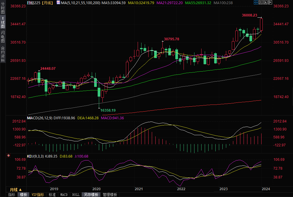 日股开局强势,自当地时间1月5日以来,开启连涨行情,当地时间1月15日,在金融板块和航运板块的带动下,日经225指数突破36000点,为1990年2月22日以来首次。今年以来日经225累计上涨了6%,距离1989年创下的历史峰值38915.9点还有6%的距离。