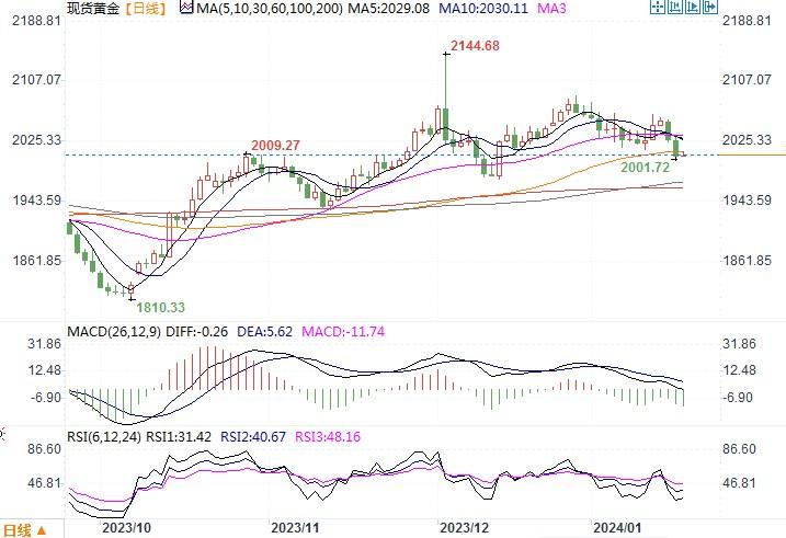 汇通财经APP讯——周三(1月17日),美国公布强劲的零售销售数据,刺激美元创一个月以来新高,导致金价触及逾一个月最低至每盎司2,003.89美元。继前一个交易日下跌1.3%后,黄金周三继续下跌了1.2%,最终低收盘在2005.71美元/盎司。
