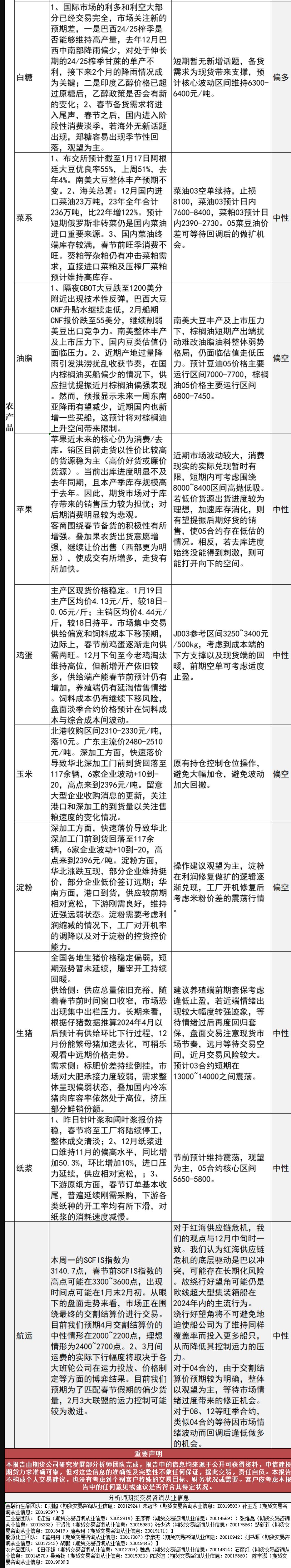 以下为中信建投期货1月19日对股指、国债、贵金属、能源化工、有色金属、黑色建材、农产品等期货操作建议及策略。