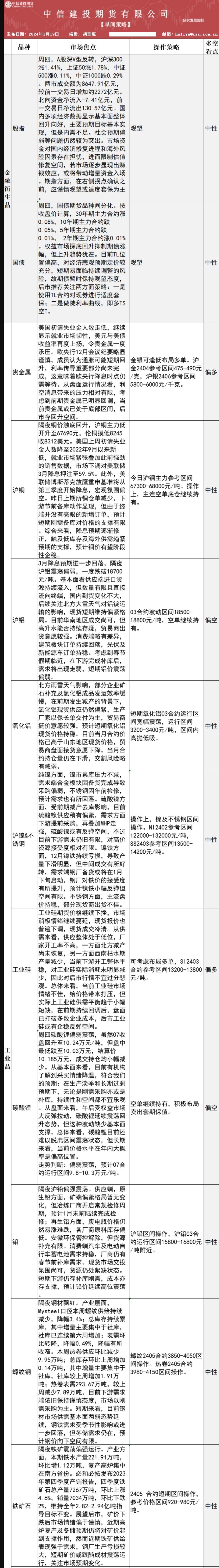 标题:中信建投期货1月19日早间交易策略
