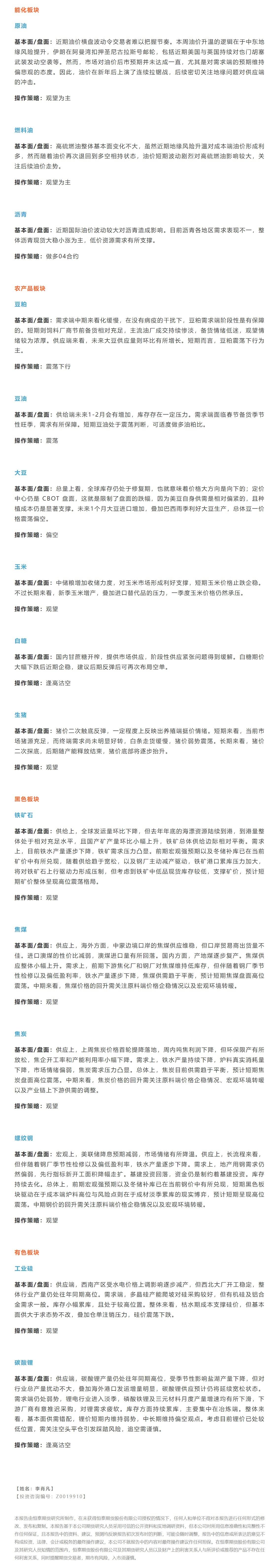 标题:恒泰期货1月19日早盘交易策略