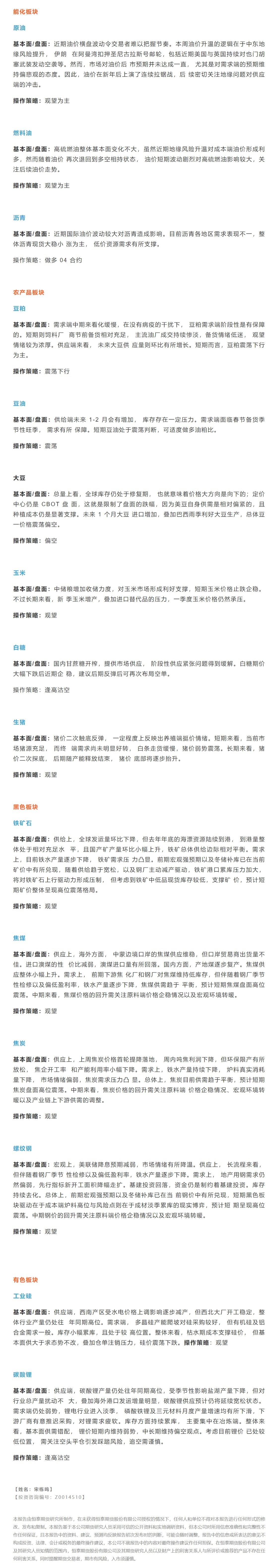 基本面/盘面:高硫燃油整体基本面变化不大,虽然近期地缘风险升温对成本端油价形成利多,然而随着油价 再次退回到多空相持状态, 油价短期波动剧烈对高硫燃油影响较大,关注后续油价走势。操作策略:观望为主。