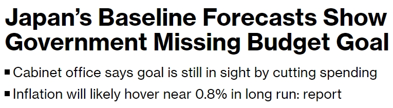 彭博社引述日本内阁府周一(1月22日)发布的中长期展望报告,预计2025财年日本的基本余额约为-0.4%,这不包括公共债务净利息支付,预计赤字与2023年7月份上次更新相比没有变化。