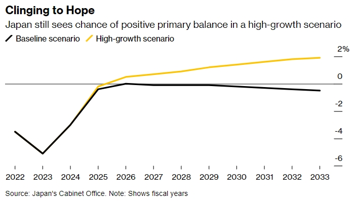 日本政府表示,假设继续努力削减支出,在高增长的情况下,这一目标仍然可以实现。这种乐观的情景预计,日本将实现与20世纪80年代和90年代相当的强劲增长率。