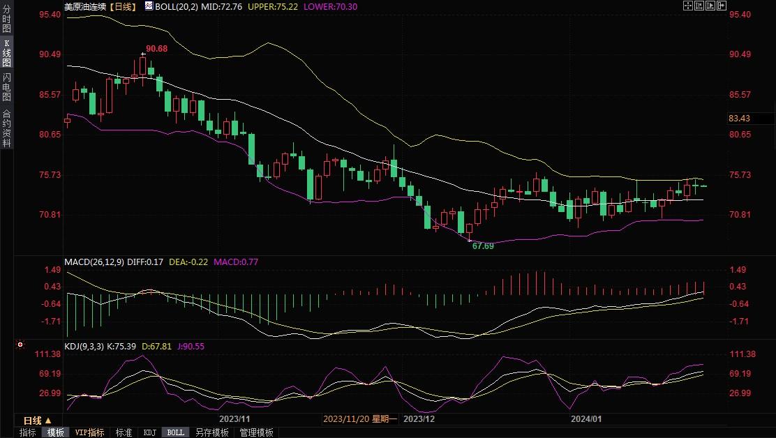 WTI 2月原油期货收跌0.39美元/桶,跌幅0.5%,收报74.37美元/桶。