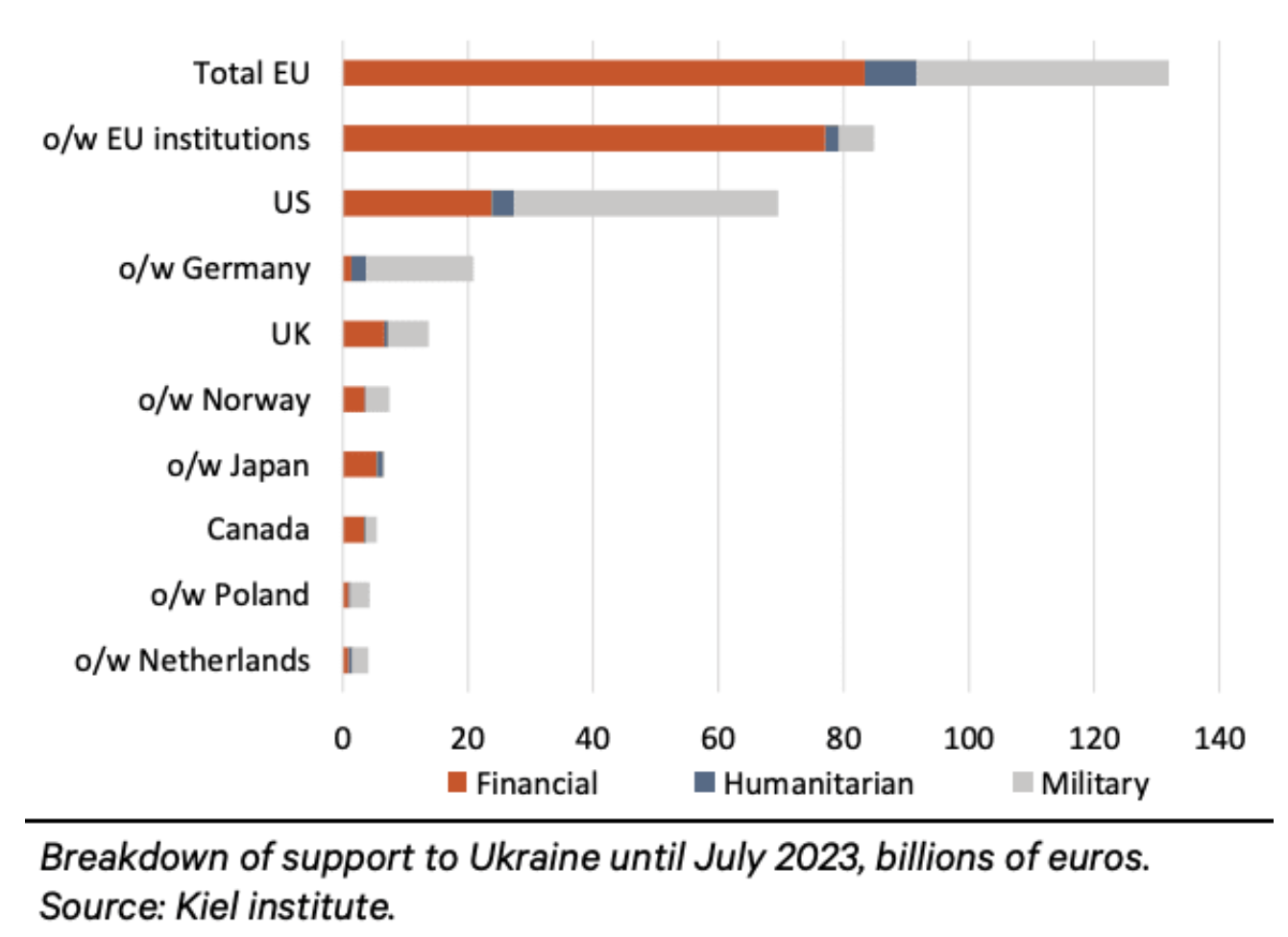 Kiel Institute确认欧盟及其成员国是乌克兰最大的捐助国,但一半的军事援助来自美国。