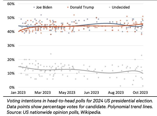 博彩市场和民意调查显示,特朗普有50比50的机会击败现任总统乔·拜登。