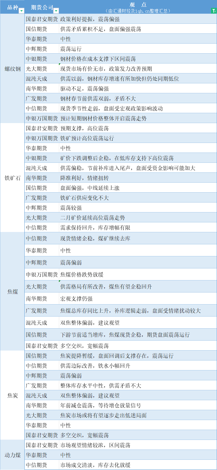 汇通财经APP讯——期货公司观点汇总一张图:1月29日黑色系(螺纹钢、焦煤、焦炭、铁矿石、动力煤等)