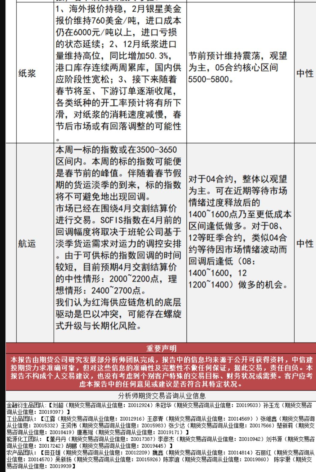 以下为中信建投期货对股指、国债、贵金属、能源化工、有色金属、黑色建材、农产品等期货的操作建议和提醒