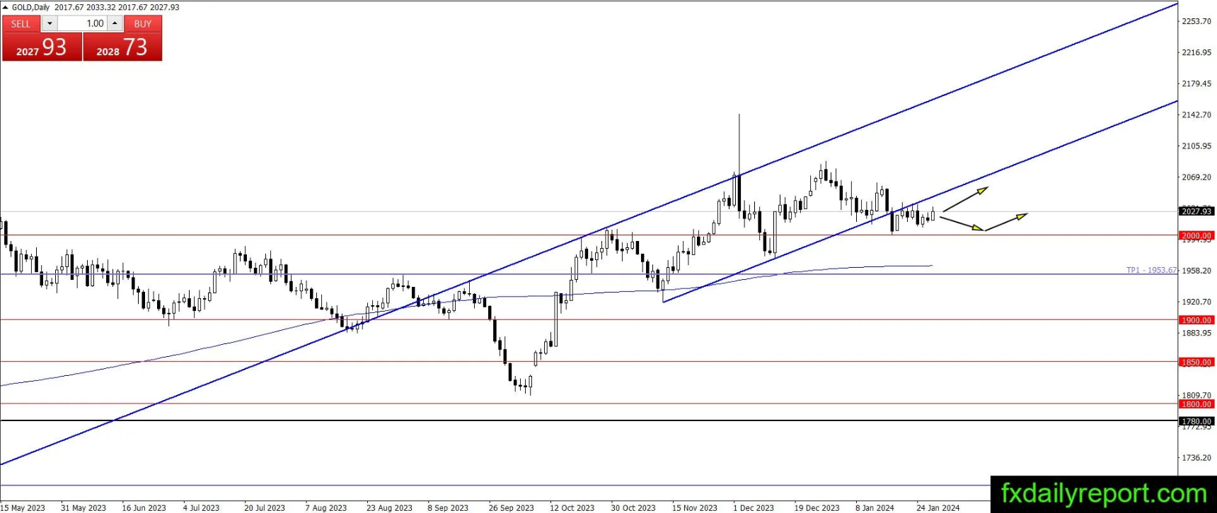 支撑位:2000美元、1950美元、1900美元、1850美元、1800美元