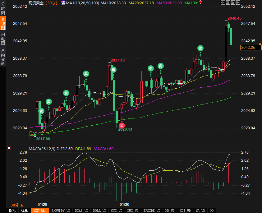 (现货黄金30分钟走势图 图源易汇通)