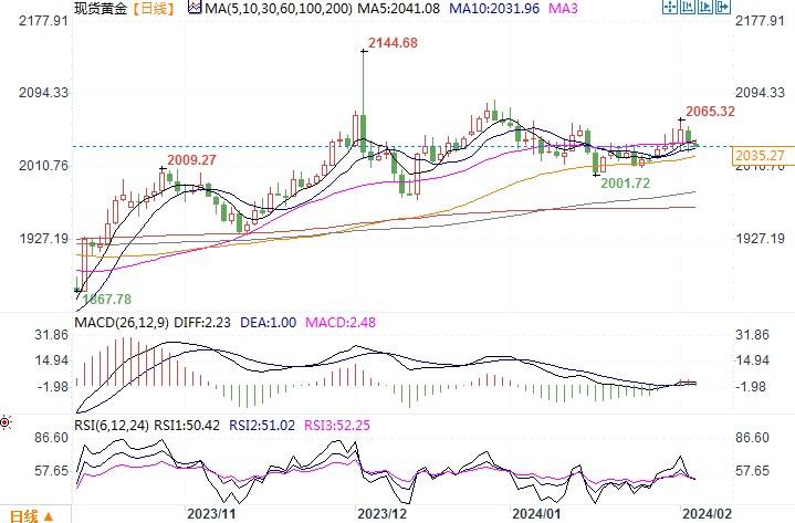 北京时间2月5日11:16 现货黄金 报 2032.03 美元/盎司