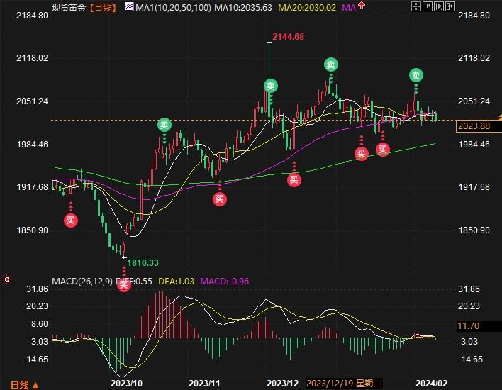 现货黄金收跌0.51%,收报2023.38美元/盎司,本周下跌0.76%。